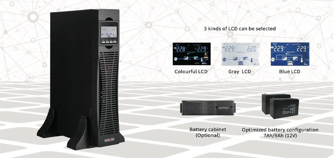 Online double conversion with full digital control Optimization battery group, the quantity of battery: 16/18/20pcs (Settable)