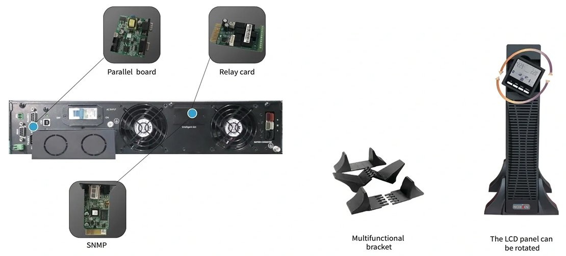 Multiple communication interface: RS232/USB/PO (Relay card/SNMP card optional)